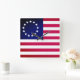La bandera de Betsy Ross es un diseño temprano reconstruido para la bandera de los Estados Unidos, que se ajusta a la Ley de Bandera de 1777 y tiene rayas rojas en el exterior y estrellas dispuestas en círculo. Estos detalles detallan la ley de 1777, aprobada a principios de la Guerra Revolucionaria de Estados Unidos, que especificaba 13 franjas horizontales alternantes rojas y blancas y 13 estrellas blancas en un cantón azul. Su nombre proviene de la historia, alguna vez ampliamente creída, de que poco después del acto de 1777, la presentadora y fabricante de banderas Betsy Ross hizo una bandera de este diseño.