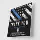 Este diseño incluye una bandera de la fuerza policial con rayas blancas y negras, y una delgada franja azul. Este reloj es genial para mostrar aprecio a un oficial que celebra un aniversario o dar las gracias a un oficial de policía, sheriff, capitán o jefe que se retira por sus años de servicio.