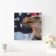 Cabeza de águila calva y mirando con una bandera estadounidense detrás de él. Este es un texto hermoso que dice que Imposible es una palabra que se encuentra solamente en el diccionario de tontos.
