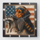 Reloj Cuadrado Bandera estadounidense de Beagle Raccoon