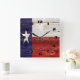 Reloj Cuadrado Bandera Rústica de Texas sobre textura de madera i