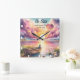 Este sereno reloj cuadrado de pared muestra una tranquila escena lacustre al atardecer, con nubes negras y rosas suaves que reflejan el agua. Un pequeño barco de madera se encuentra junto a la orilla, con un pájaro azul. El inspirador texto "Be Still And Know That I Am God" (Sé y sé que soy Dios) añade un toque espiritual pacífico y reflexivo a este hermoso paisaje natural.