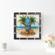 Este reloj cuadrado de pared ofrece una vibrante escena de playa con imponentes palmeras, suaves olas oceánicas y conchas esparcidas. Una prominente tabla de surf declara "LA VIDA ES MEJOR EN LA PLAYA", haciendo de este colorido y sereno reloj un acento decorativo perfecto para todo aquel que ame la arena, el sol y el mar.