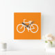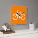 Sencillo símbolo de bicicleta en blanco y naranja.