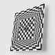 The high-contrast design feels graphic and contemporary, while the square format enhances the geometric impact of the illusion. Clean black clock hands ensure clear readability without distracting from the pattern.