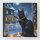 Reloj Cuadrado Black Cat With Christmas Lights Holiday