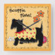 Muestra el amor de tu perro con este lindo reloj de pared con un perro negro y personalizado con las palabras "hora escocesa" o el nombre de tu perro u otras palabras. Personalizar las palabras encima de la imagen artística o suprímase si lo prefiere. Este caprichoso Scottie Terrier negro lleva puesto un abrigo amarillo decorado con un collar rojo y huellas de pata roja. Detrás de la Escocia hay una pelota roja con puntos azul turquesa. El fondo es amarillo con huellas de pata amarillo tonal. Dos flores naranjas están encima del perro. Una serpentina línea bordea la imagen del perro para hacer un reloj de pared elegante, moderno y decorativo. Este perro lindo, cariñoso y de moda es arte original de Phyllis Dobbs y derritirá el corazón de un amante de los perros. Esta Escocia forma parte de la serie 6 de Escocia y todos tienen el personalizable de hacerlo suyo.