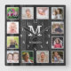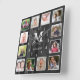 Reloj Cuadrado Black Wood 12 Photo Collage Family Name Monogram