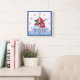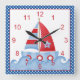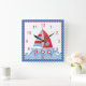 Personaliza este gran reloj de pared de velero audaz perfecto para una habitación de niño o una casa de vacaciones con un monograma. Simplemente edite en el sencillo editor de texto Zazzle. También disponible con puntos rojos de polka. Barco de vela rojo y azul con fondo de punto de polka azul creado en parte con gráficos de Kristi W comprados en www.digiwebstudio.com.