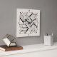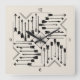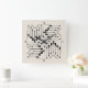 Este patrón de reloj de pared de inspiración azteca tiene un ambiente de Boho moda con un arreglo geométrico de flechas alrededor de una forma de sol llamativa. Esta moderna versión cuadrada tiene un sencillo esquema de color negro en el color de fondo de su elección (el blanco roto aquí es opcional). Busque ID748 para ver otras opciones de color y productos con este patrón.