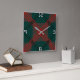 Reloj Cuadrado Bolas rojas a negras o agujeros sobre fondo verde