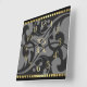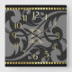 Reloj Cuadrado Borde dorado de diseño brillante gris con monogram