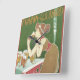 Diseño de poster publicitario Art Nouveau de ilustracion vintage con Brasserie Fraikin-Courard de Maxime Fraikin, 1900. Este diseño publicitario de bebidas y bebidas muestra a una dama victoriana tomando una cerveza de barril de un vaso de cerveza detrás de una cortina. Una cervecería francesa y una mesa con una presión formidable.