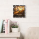 This incredibly serene and inspirational design beautifully captures the essence of the Holy Spirit as a gentle, sovereign power. The artwork features a pure white Dove soaring through a breathtaking, golden mountainous landscape at sunset, symbolizing spiritual freedom. A prominent clock motif with dark hands overlays the scene, reminding the observer of the eternal nature of faith and God's perfect timing. The design is presented with a high-quality, durable print that creates the striking illusion of a rich, dark wood grain frame surrounding the image, though this border is entirely a visual effect printed directly onto the clock face and is not a separate frame or real wood. The image contains the powerful Bible verse, "The wind blows wherever it pleases. So it is with everyone born of the Spirit. John 3:8." The overall presentation results in a powerful piece of Christian art designed to be both beautiful and long-lasting.