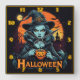 Reloj Cuadrado Bruja disfrutando de una bebida de calabaza en la