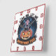 Reloj Cuadrado Bruja encaramada en una calabaza en un cielo noctu