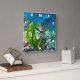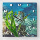 Reloj acrílico de pared de 10.75" x 10.75" con la imagen de una pintura acuarela de un caballito de mar caprichoso en plantas marinas. Consejo: Para hacer las manos más visibles, y para acentuar la belleza de este reloj, opte por las manos grises o pintarlas de blanco. Ver la colección Under the Sea Clock en la DECOR | Sección Relojes.