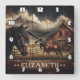 Reloj Cuadrado Caballos en un granero rústico bajo nubes de monta