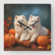 Reloj Cuadrado Cachorro Samoyed Otoño Delicia Calabaza