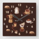 Reloj Cuadrado Café de mano, frijoles y copa