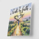 Este sereno reloj de pared representa una figura solitaria que camina confiadamente por un sendero iluminado, sinuoso a través de un vibrante paisaje de árboles y montañas lejanas bajo un hermoso amanecer o un hermoso cielo al atardecer. El mensaje motivador, "Camina por la fe todos los días", se muestra de manera prominente. Con su estilo tranquilo y pintoresco, este reloj sirve como un recordatorio constante y edificante para abrazar una caminata diaria de fe, guiada por la luz divina y el propósito.
