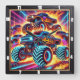 Reloj Cuadrado Camiones de Monstruo Neon en un incandescente paqu