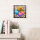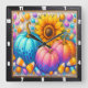 Este reloj cuadrado de pared cuenta con un girasol amarillo vibrante rodeado de tres calabazas de colores en tonos azules, rosas y naranjas, todas decoradas con puntos de polka extravagantes. El maíz de dulce disperso y las pastillas dulces llenan el fondo, creando una escena divertida y fantástica de la cosecha otoñal, perfecta para una alegre exposición estacional.