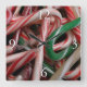 Reloj Cuadrado Candy Canes Navidades vacaciones Verde Blanco y Ro