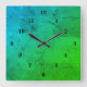 Reloj Cuadrado Canica verde azul, arte de arcoíris