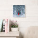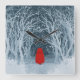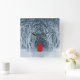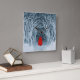 Caperucita Roja en un invierno nevado caminando por el bosque. ¿Puedes ver al Gran Lobo Malo aullando a la distancia? Una versión borrosa de una pintura acuarela negativa.