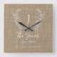 Reloj Cuadrado Casa de campo rústica elegante familia monogramada