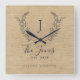 Monograma personalizado y nombre con familia de año y lugar elegante moda estilo casa de campo de color beige burlap reloj de pared. ++++++ Un regalo moderno para bodas, aniversarios, amas de casa, Acción de Gracias, vacaciones para Navidades.