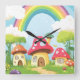 Reloj Cuadrado Casas de hongos y arco iris 11