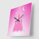 Reloj Cuadrado Castillo soñador rosado en el cielo estrellado de