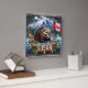 Reloj Cuadrado castor canadiense cerca del agua con bandera de ho