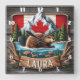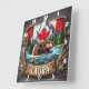 Reloj Cuadrado Castor canadiense con bandera y montañas