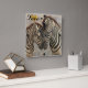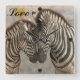 Reloj de pared acrílico de 10.75" x 10.75" con una imagen de una pintura de una cebra y su colt y un corazón dorado opcional con "Amor" impreso en escritura negra. Las orbes negras marcan las posiciones 12, 3, 6 y 9. Consejo: Para hacer las manos más visibles, opte por las manos grises o póntelas de oro. Vea toda la colección Nature & Wildlife Clock en la sección HOME.