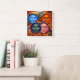 Make every hour magical with the celestial elemental ritual square wall clock. The centrepiece design brings together all four mystical moon faces the serene blue the intense orange, the mysterious green and the winking pink watching over a high fantasy landscape.