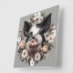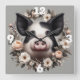 Reloj Cuadrado Cerdo en una corona floral