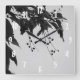 Este reloj de pared temático de la naturaleza ofrece las pequeñas cerezas que cuelgan de la rama de un cerezo salvaje en blanco y negro. los *numbers pueden ser quitados.