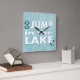 Reloj Cuadrado Cesta impresa en madera azul "Salta en el lago"