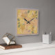 Reloj Cuadrado Chic Gold Leaf Violet Floral Background