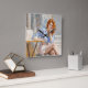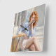 Reloj Cuadrado Chica de belleza de cabello rojo sentado en un caf