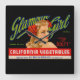 Etiqueta de la cesta de frutas de época de la marca Glamor Chica de Verduras de California.