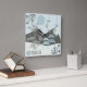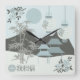 Chinese landscape design with two blue Torii, the sun shining on a light blue background, green mountains, two lanterns, bamboo trees and little flowers with the words "I believe" written in Chinese. Beautifully designed in the shades of blue and green that have a unique look and originality. A lovely addition to your home décor.