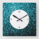 Reloj Cuadrado Chispas purpurinas brillantes azules de Aqua