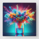 The image depicts a vibrant explosion of color erupting from a laboratory beaker. Clouds of pink, orange, blue, and green ink billow upwards, capturing the energy of a chemical reaction frozen in time. The beaker, filled with a glowing blue liquid, sits on a reflective surface, hinting at the transformative power contained within. The dark background and strategic lighting further emphasize the brilliance of the colors, creating a sense of wonder and excitement.
