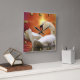 Reloj Cuadrado Cisne blanco en un lago con una puesta de sol en o