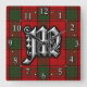 Reloj Cuadrado Clan Maxwell Letter M Monograma Tartán Verde Rojo