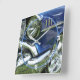 Coche Custom azul 1957 Chevy con motor cromado y números blancos, o use su foto. Haga clic en “Personalizar” para cambiar los colores y estilos de letra.